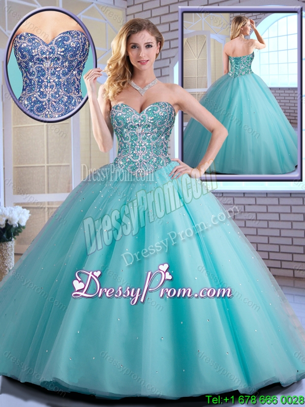 New Style Beading Sweetheart Quinceanera Dresses in Aqua Blue