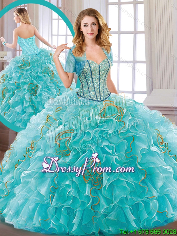 New Arrivals Aqua Blue Sweet 16 Dresses with Beading and Ruffles