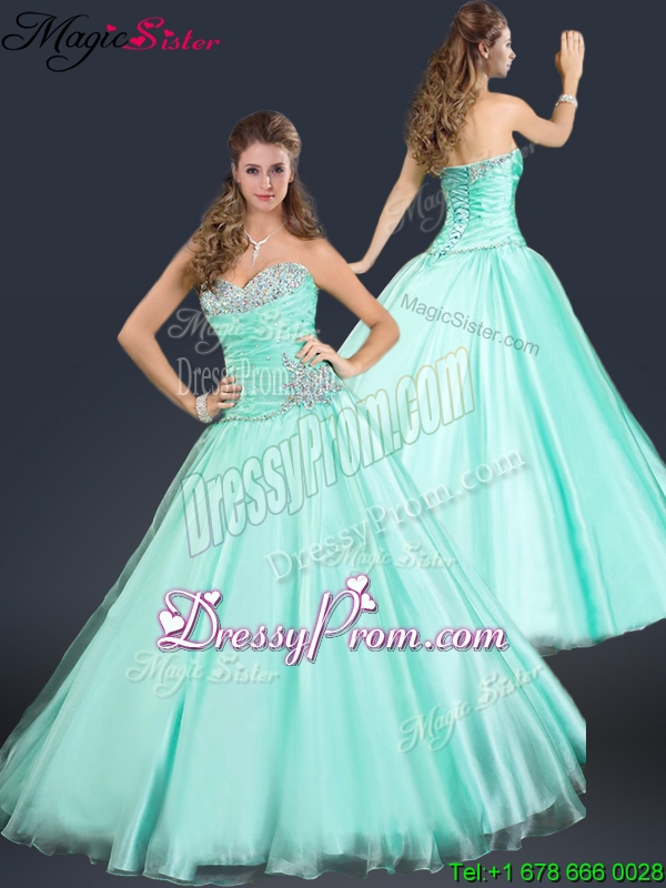 Neckline : SweetheartShown Color : Apple GreenSilhouette : A-lineSleeve Length : sleevelessHemline : floor lengthBack Detail : Lace upFabric : OrganzaEmbellishment : BeadingOccasion : Prom,Formal Evening,Homecoming,Graduation,Pageant,HolidaySeason : Spring,Summer,Fall,Winter