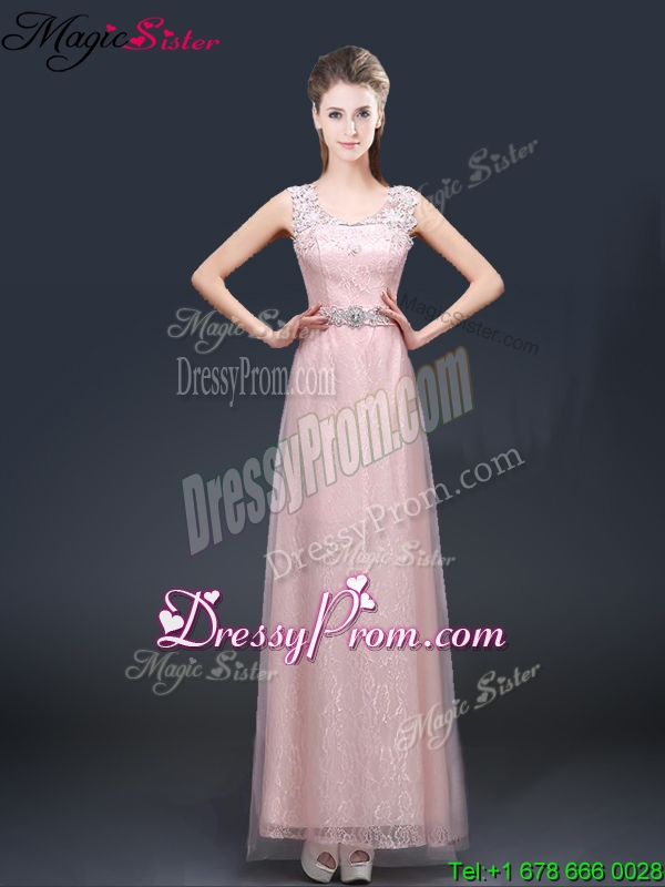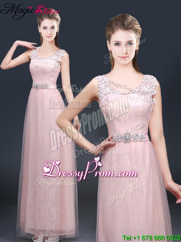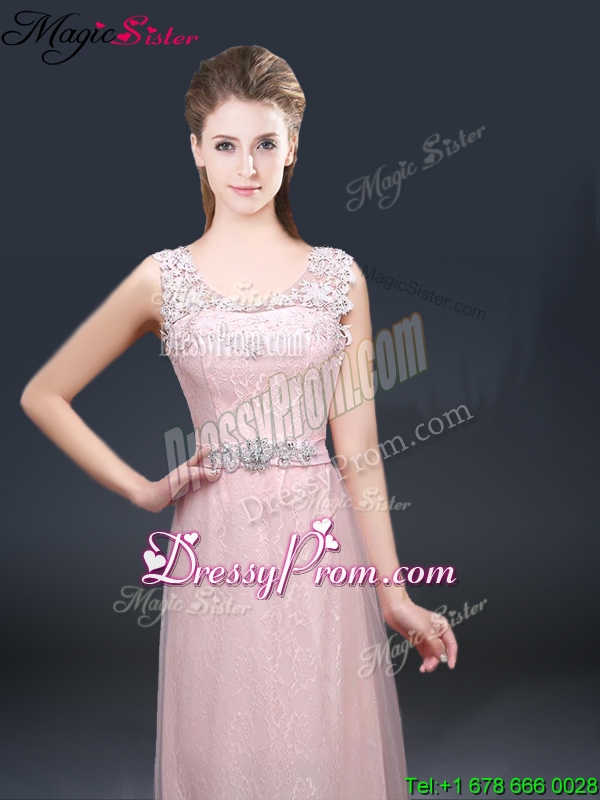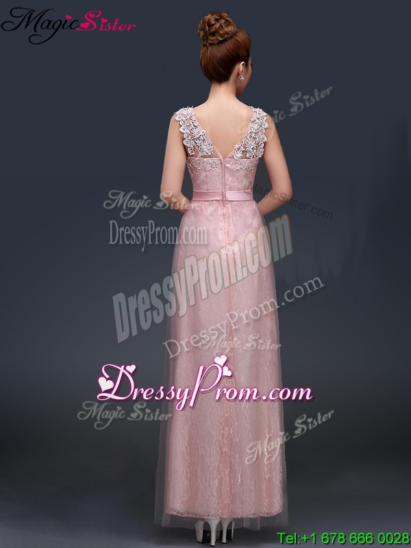 Neckline : ScoopShown Color : Pink Silhouette : EmpireSleeve Length : sleevelessHemline : ankle lengthBack Detail : ZipperFabric : TulleEmbellishment : Lace,AppliquesOccasion : Prom,Formal Evening,Homecoming,Graduation,Pageant,HolidaySeason : Spring,Summer,Fall,Winter
