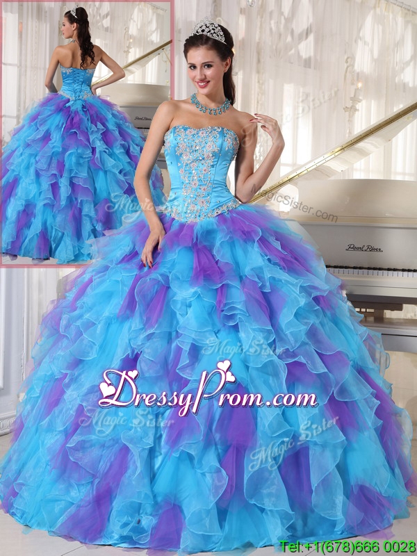 Neckline : StraplessSilhouette : Ball GownsSleeve Length : sleevelessHemline : floor lengthBack Detail : Lace upFabric : OrganzaEmbellishment : Beading,AppliquesOccasion : Prom,Graduation,Sweet 16,QuinceaneraSeason : Spring,Summer,Fall,Winter