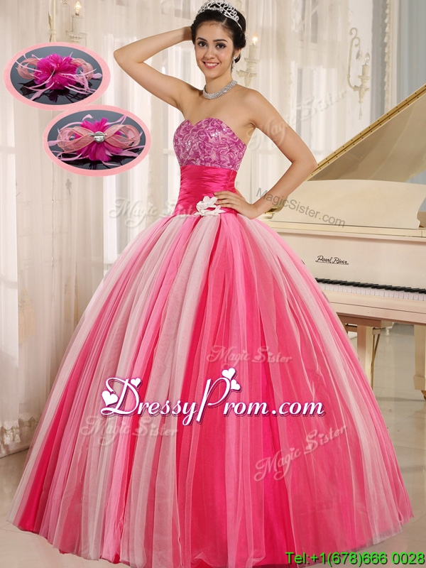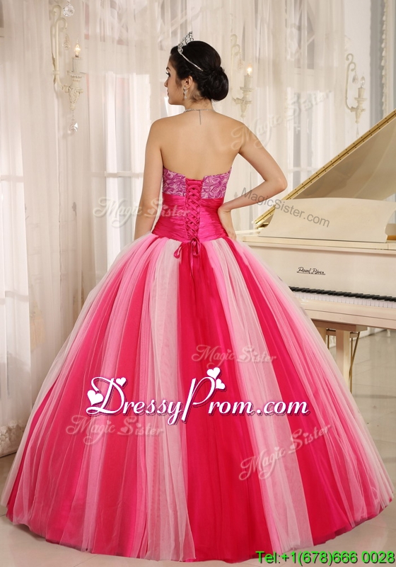 Neckline : StraplessShown Color : Multi-colorSilhouette : Ball GownsSleeve Length : sleevelessHemline : floor lengthBack Detail : Lace upFabric : TulleEmbellishment : Hand Made FlowerOccasion : Graduation,Military Ball,Sweet 16,QuinceaneraSeason : Spring,Summer,Fall,Winter