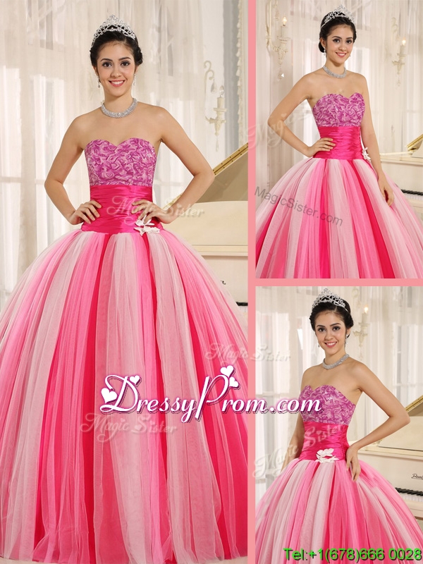Neckline : StraplessShown Color : Multi-colorSilhouette : Ball GownsSleeve Length : sleevelessHemline : floor lengthBack Detail : Lace upFabric : TulleEmbellishment : Hand Made FlowerOccasion : Graduation,Military Ball,Sweet 16,QuinceaneraSeason : Spring,Summer,Fall,Winter