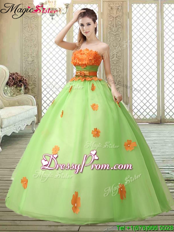 Neckline : StraplessShown Color : Spring GreenSilhouette : Ball GownsSleeve Length : sleevelessHemline : floor lengthBack Detail : Lace upFabric : OrganzaEmbellishment : Appliques,BeltOccasion : Military Ball,Sweet 16,QuinceaneraSeason : Spring,Summer,Fall,Winter