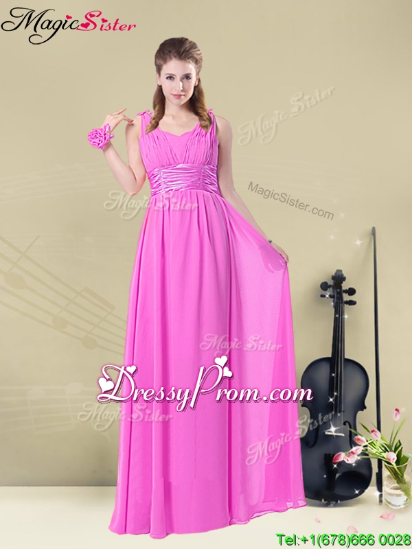 Neckline : V-neckShown Color : Rose Pink Silhouette : EmpireSleeve Length : sleevelessHemline : floor lengthBack Detail : Lace upFabric : ChiffonEmbellishment : Ruching,BeltOccasion : Prom,Formal Evening,Party,Homecoming,Graduation,Military BallSeason : Spring,Summer,Fall,Winter