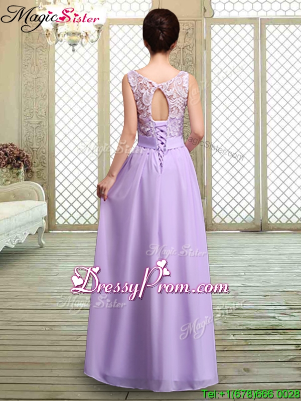 Neckline : ScoopShown Color : LavenderSilhouette : EmpireSleeve Length : sleevelessHemline : floor lengthBack Detail : Lace upFabric : ChiffonEmbellishment : Lace,BowknotOccasion : Prom,Formal Evening,Party,Homecoming,Graduation,Wedding PartySeason : Spring,Summer,Fall,Winter