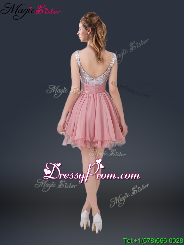 Neckline : StrapsShown Color : Watermelon RedSilhouette : ShortSleeve Length : sleevelessHemline : mini lengthBack Detail : ZipperFabric : OrganzaEmbellishment : PatternOccasion : Prom,Formal Evening,Party,Graduation,8th Grade,Wedding PartySeason : Spring,Summer,Fall,Winter