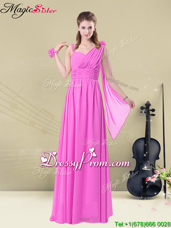 Neckline : StrapsShown Color : Rose Pink Silhouette : EmpireSleeve Length : sleevelessHemline : floor lengthBack Detail : Lace upFabric : ChiffonEmbellishment : Ruching,BeltOccasion : Prom,Formal Evening,Party,Homecoming,Graduation,Wedding PartySeason : Spring,Summer,Fall,Winter