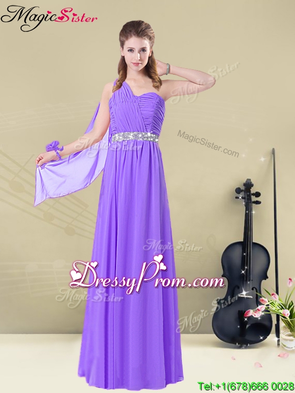 Neckline : One shoulderShown Color : PurpleSilhouette : EmpireSleeve Length : sleevelessHemline : floor lengthBack Detail : Lace upFabric : ChiffonEmbellishment : Ruching,BeltOccasion : Prom,Formal Evening,Party,Homecoming,Graduation,Wedding PartySeason : Spring,Summer,Fall,Winter
