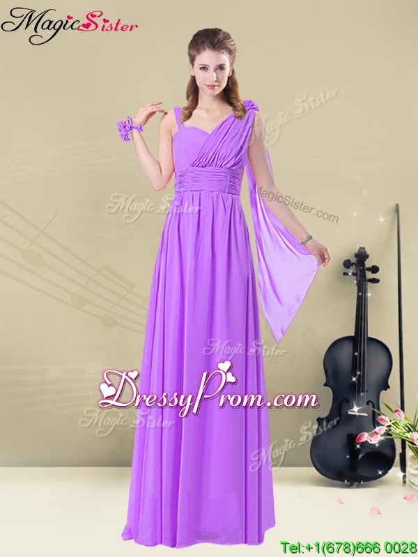 Neckline : StrapsShown Color : LilacSilhouette : EmpireSleeve Length : sleevelessHemline : floor lengthBack Detail : Lace upFabric : ChiffonEmbellishment : Ruching,BeltOccasion : Prom,Formal Evening,Party,Homecoming,Graduation,Wedding PartySeason : Spring,Summer,Fall,Winter