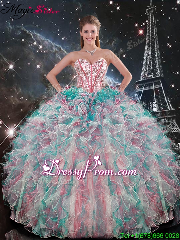 Neckline : SweetheartSleeve Length : sleevelessHemline : floor lengthBack Detail : Lace upFabric : OrganzaEmbellishment : Beading,RufflesOccasion : Military Ball,Sweet 16,QuinceaneraSeason : Spring,Summer,Fall,Winter