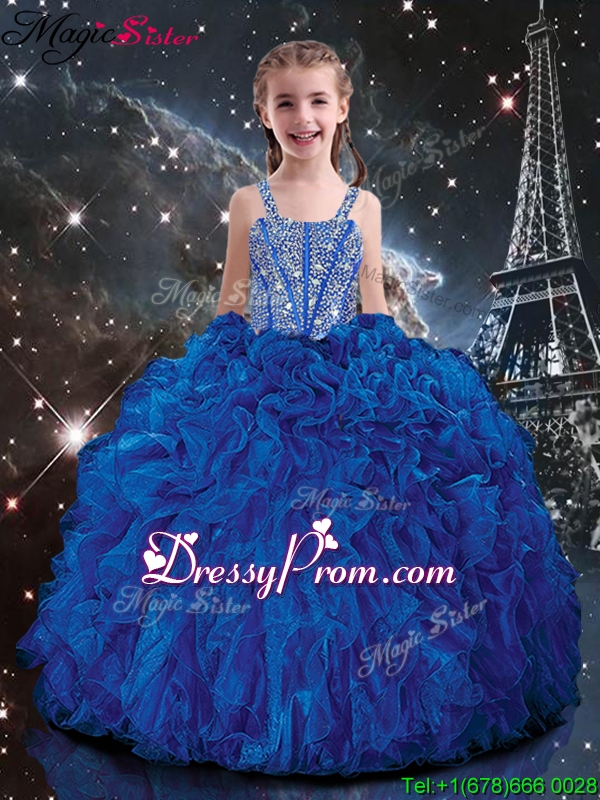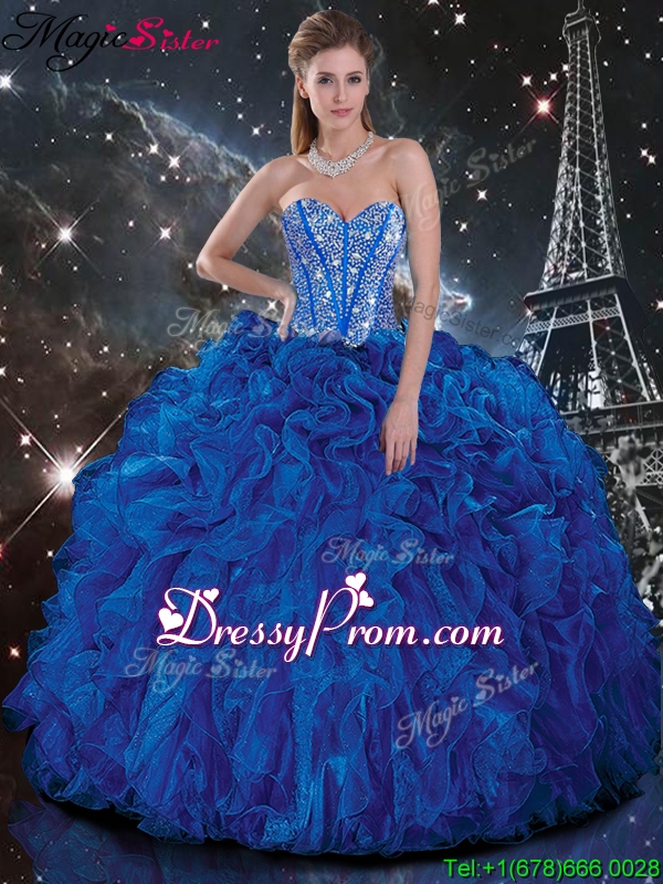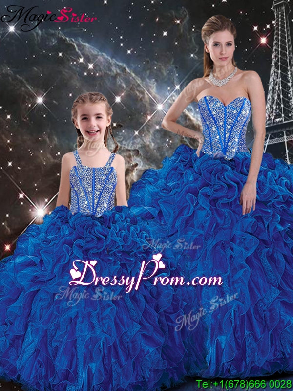 Wonderful Ball Gown Princesita With Quinceanera Dresses with Beading and Ruffles in Blue for Fall
