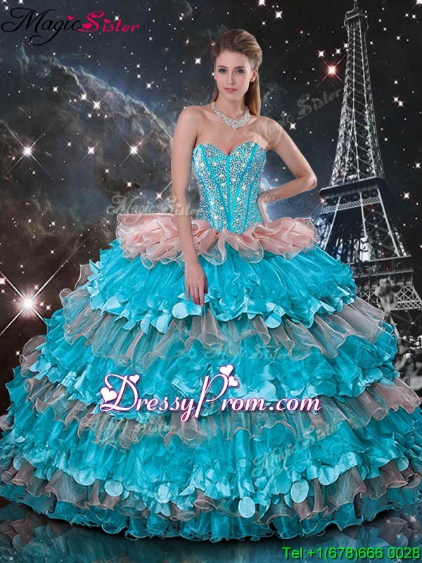 Neckline : SweetheartShown Color : Multi-colorSilhouette : Ball GownsSleeve Length : sleevelessHemline : floor lengthBack Detail : Lace upEmbellishment : Beading,Ruffled LayersOccasion : Military Ball,Sweet 16,QuinceaneraSeason : Spring,Summer,Fall,Winter