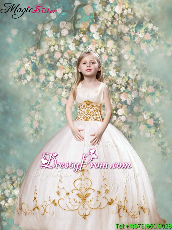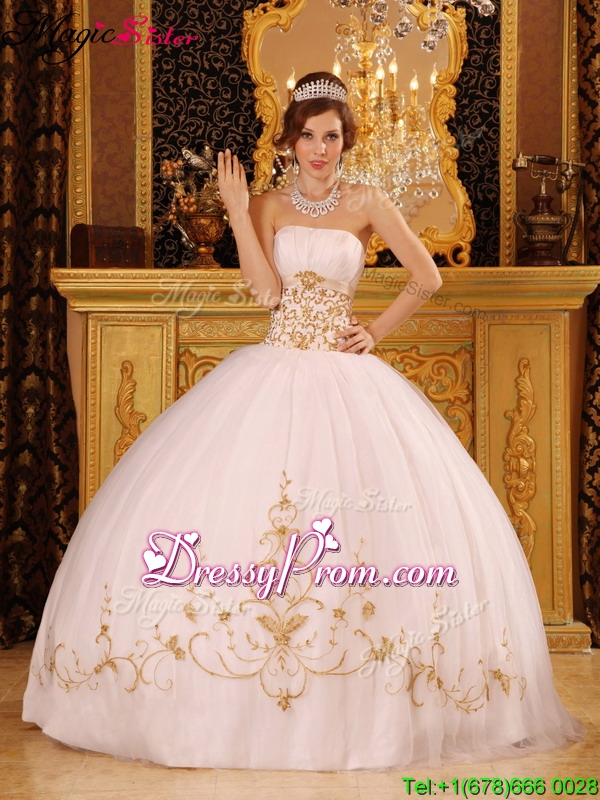 Neckline : SweetheartShown Color : White,GoldSilhouette : Ball GownsSleeve Length : sleevelessHemline : floor lengthBack Detail : Lace upFabric : TulleEmbellishment : AppliquesOccasion : Military Ball,Sweet 16,QuinceaneraSeason : Spring,Summer,Fall,Winter