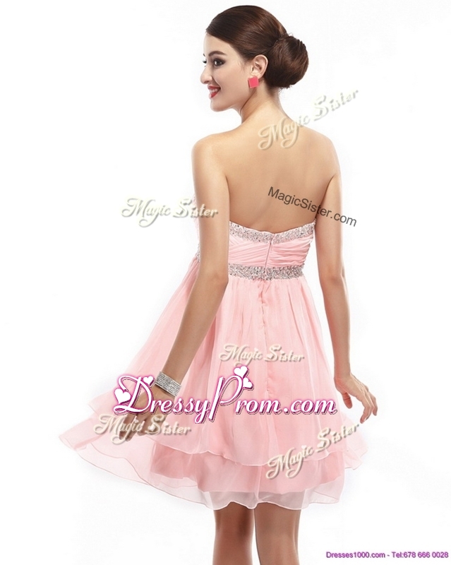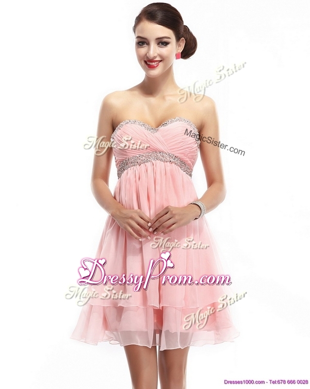 Neckline : SweetheartShown Color : Pink Silhouette : ShortSleeve Length : sleevelessHemline : mini lengthBack Detail : ZipperFabric : ChiffonOccasion : Prom,Party,Cocktail,Homecoming,GraduationSeason : Spring,Summer,Fall