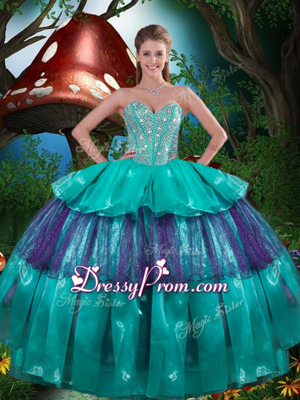 Neckline : SweetheartSilhouette : Ball GownsSleeve Length : sleevelessHemline : floor lengthBack Detail : Lace upFabric : OrganzaEmbellishment : Beading,Ruffled LayersOccasion : Military Ball,Sweet 16,QuinceaneraSeason : Spring,Summer,Fall,Winter