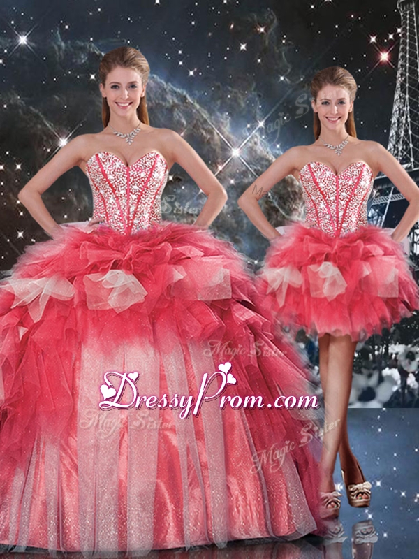 Fashionable Puffy Sweetheart Detachable Beading Quinceanera Gowns for Winter