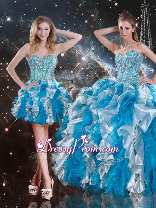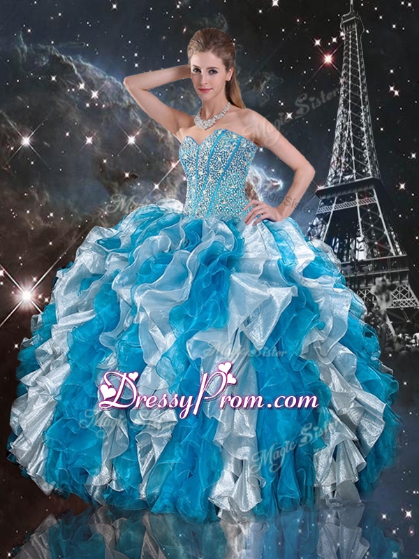 Neckline : SweetheartSilhouette : Ball GownsSleeve Length : sleevelessHemline : floor lengthBack Detail : Lace upFabric : OrganzaEmbellishment : Beading,RufflesOccasion : Military Ball,Sweet 16,QuinceaneraSeason : Spring,Summer,Fall,Winter