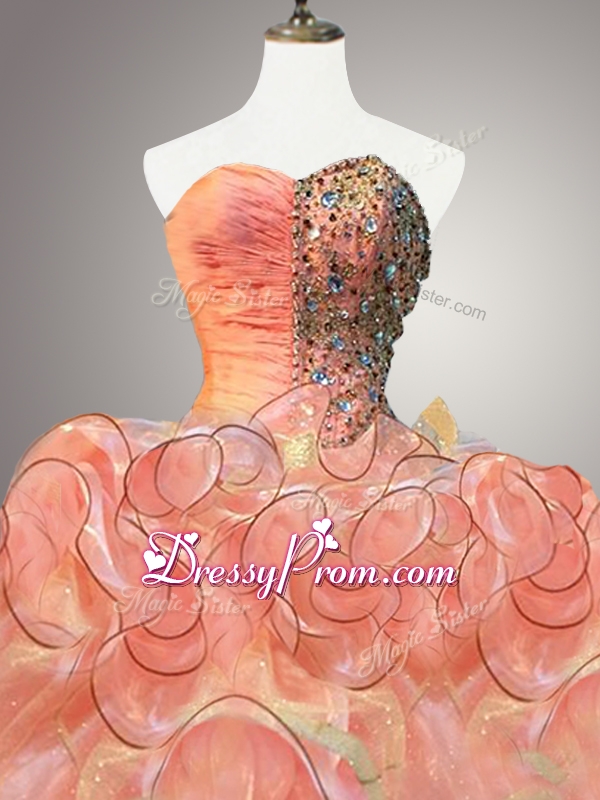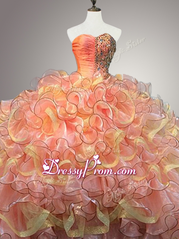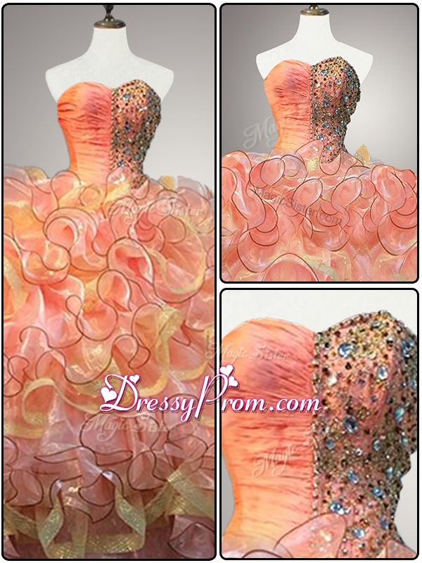 Neckline : SweetheartSilhouette : Ball GownsSleeve Length : sleevelessHemline : floor lengthBack Detail : Lace upFabric : OrganzaEmbellishment : Beading,RufflesOccasion : Military Ball,Sweet 16,QuinceaneraSeason : Spring,Summer,Fall,Winter