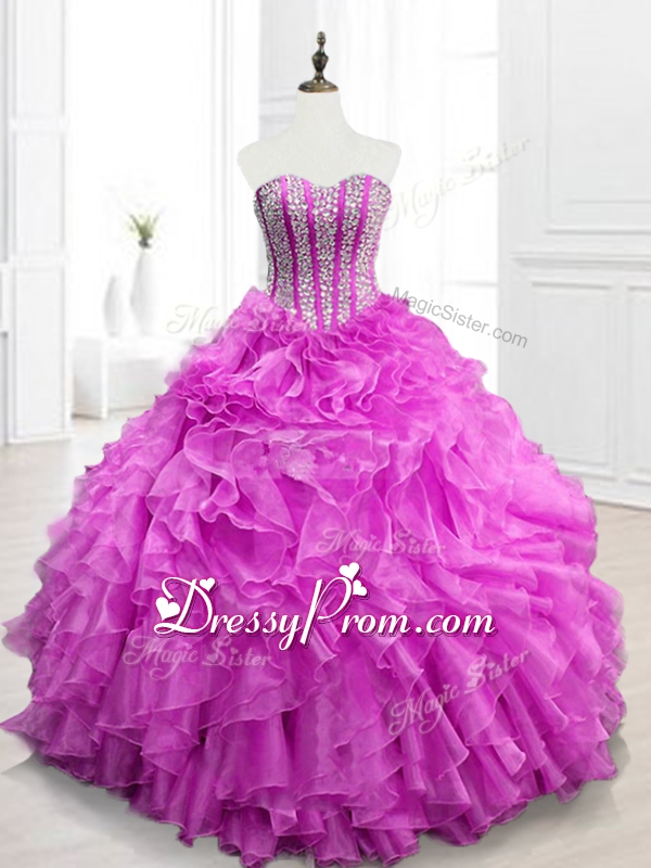 Custom Made Beading and Ruffles Fuchsia Quinceanera Gowns for 2016