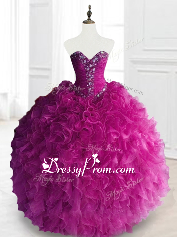 2016 Beading and Ruffles Custom Made Quinceanera Dresses in Fuchsia