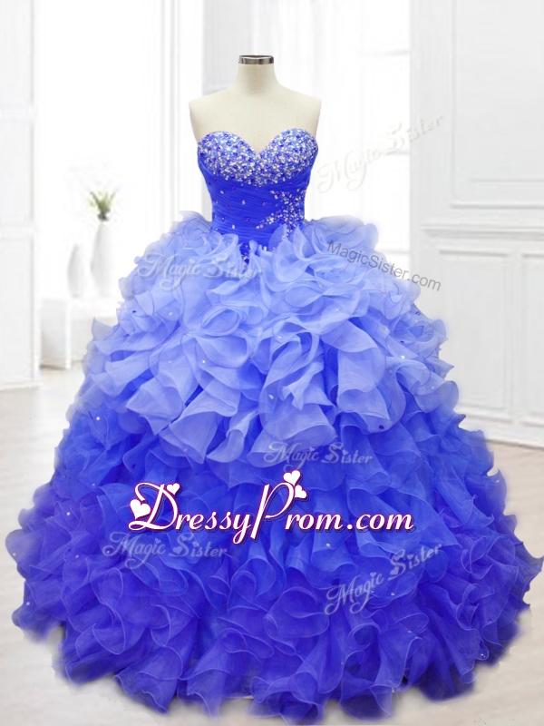 Sweetheart Blue In Stock Quinceanera Gowns with Beading and Ruffles