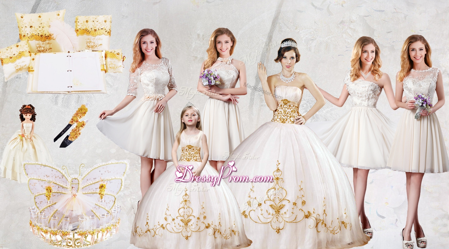 Discount Strapless Quinceanera Dresses and Lovely Scoop Mini Quinceanera Dresses and Beautiful Champagne Short Dama Dresses
