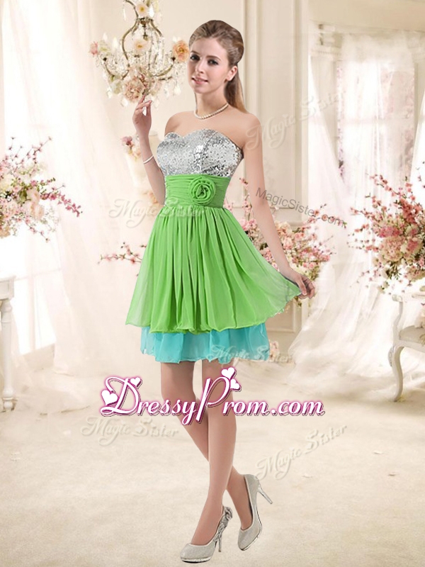 2016 Affordable Sweetheart Short Dama Dresses with Sequins and Belt