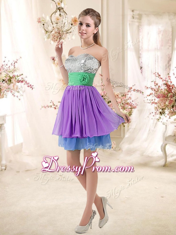 Most Popular Sweetheart Multi Color Short Dama Dresses with Sequins