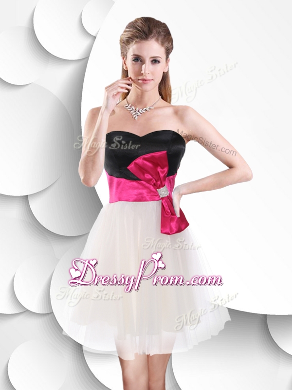 Neckline : Sweetheart Shown Color : White And Black Silhouette : Short Sleeve Length : sleeveless Hemline : mini length Back Detail : Lace up Fabric : Tulle Embellishment : Bowknot Occasion : Prom,Party,Cocktail,Homecoming,Graduation Season : Spring,Summer,Fall