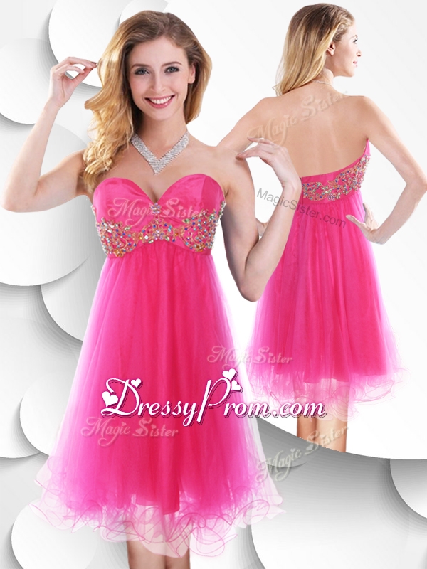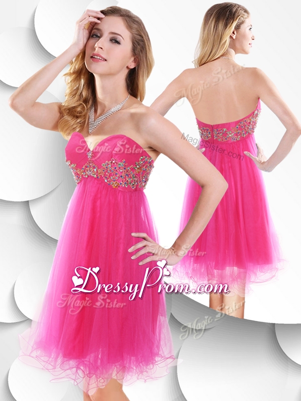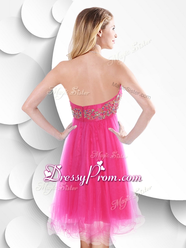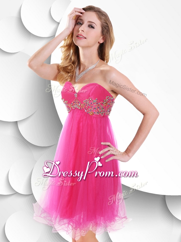 Neckline : SweetheartShown Color : Hot PinkSilhouette : ShortSleeve Length : sleevelessHemline : mini lengthBack Detail : ZipperFabric : OrganzaEmbellishment : BeadingOccasion : Prom,Party,Cocktail,Homecoming,GraduationSeason : Spring,Summer,Fall