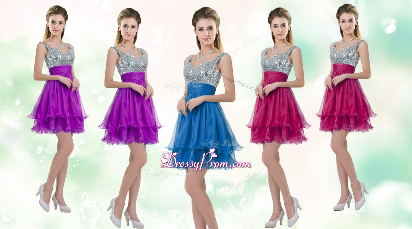 Perfect Straps Short Quinceanera Dresses with Sequins for Cocktail