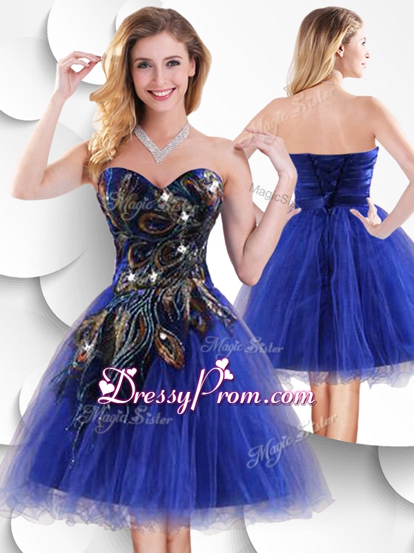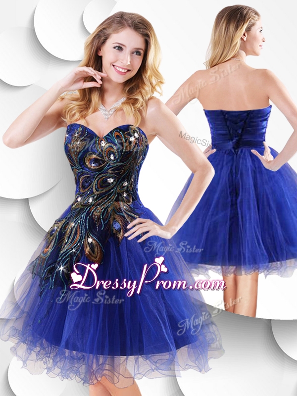 Neckline : Sweetheart Shown Color : Blue Silhouette : Short Sleeve Length : sleeveless Hemline : mini length Back Detail : Lace up Fabric : Organza Embellishment : Beading,Appliques Occasion : Prom,Party,Cocktail,Homecoming,Graduation Season : Spring,Summer,Fall