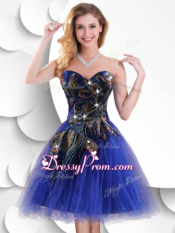 Luxurious Short Peacock Blue Prom Dress with Beading and Appliques