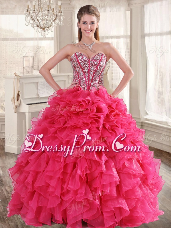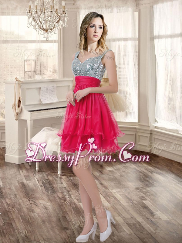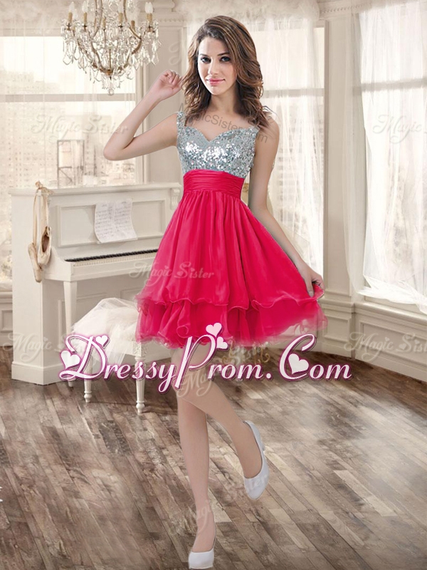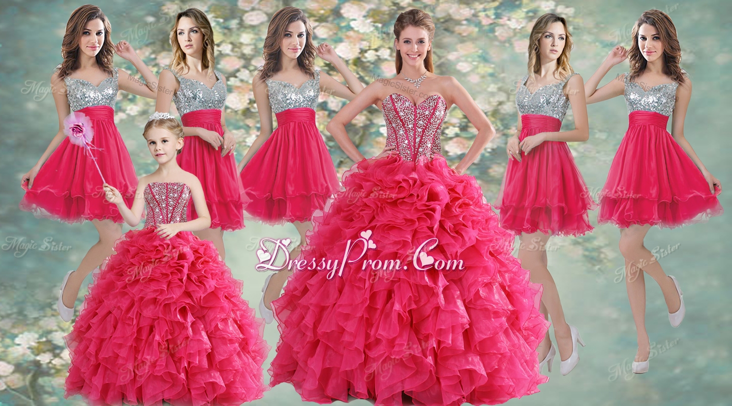 Visible Boning Coral Red Quinceanera Dress and Short Sequined Dama Dresses and Beaded and Ruffled Mini Quinceanera Dress