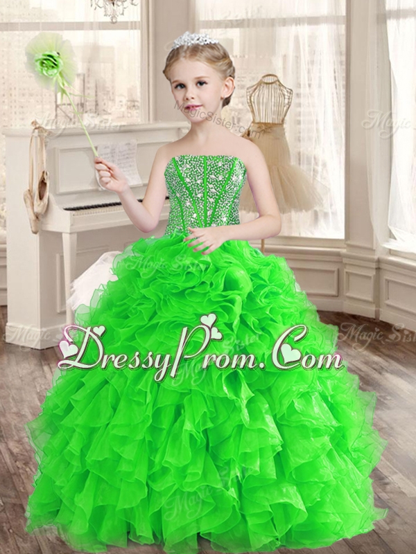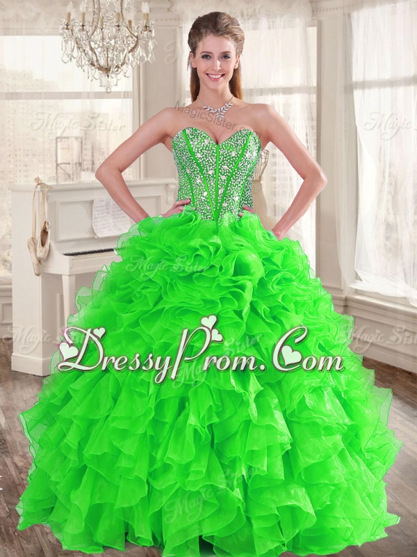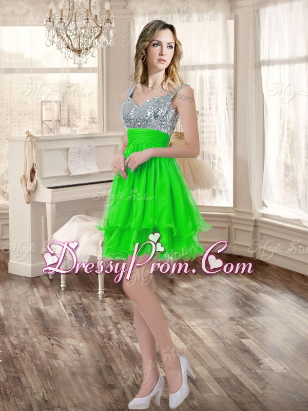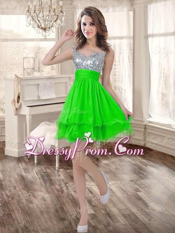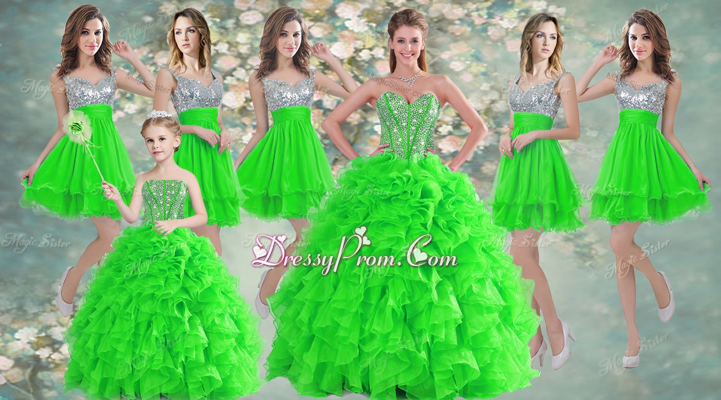 Really Puffy Spring Green Sweet 16 Dress and Sequined Short Dama Dresses and Beaded and Ruffled Mini Quinceanera Dress
