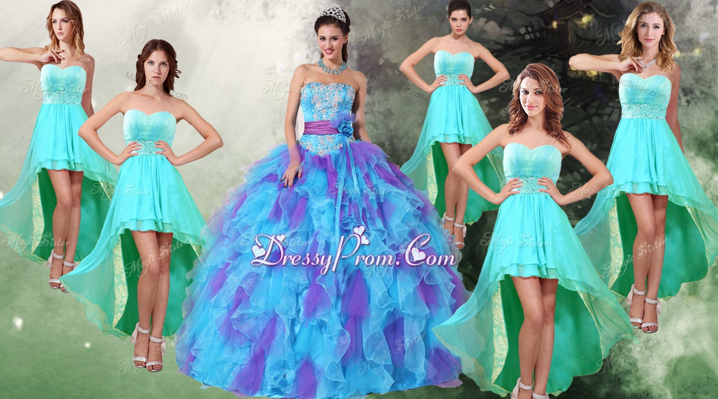 Perfect Applique and Ruffled Quinceanera Dress and High Low Beaded Dama Dresses