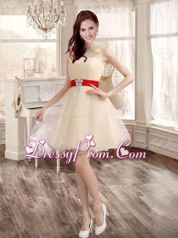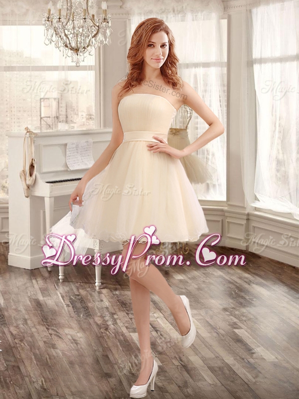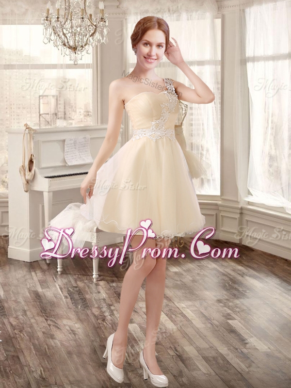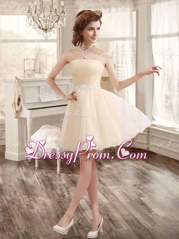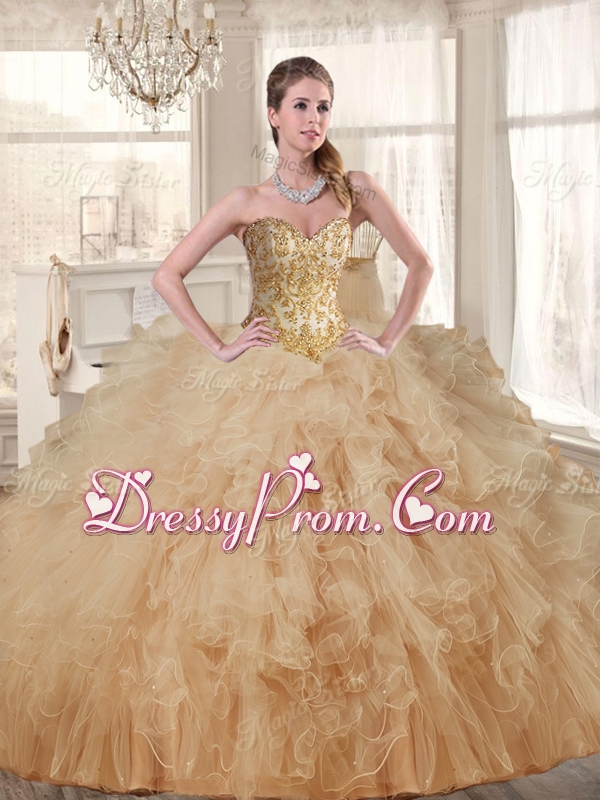 Classical Applique and Ruffled Champagne Sweet 16 Dress and Short Dama Dresses