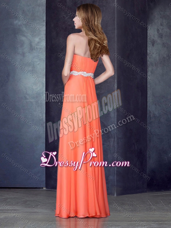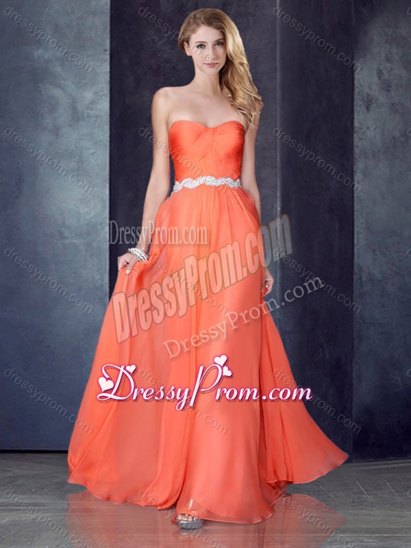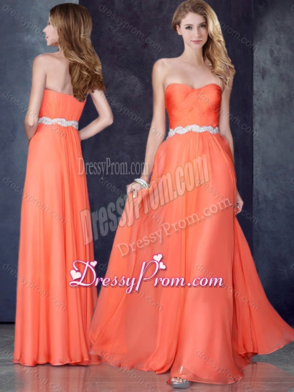 Neckline : SweetheartShown Color : Orange RedSilhouette : EmpireSleeve Length : sleevelessHemline : floor lengthBack Detail : ZipperFabric : ChiffonEmbellishment : BeadingOccasion : Prom,Party,Cocktail,Homecoming,GraduationSeason : Spring,Summer,Fall,Winter