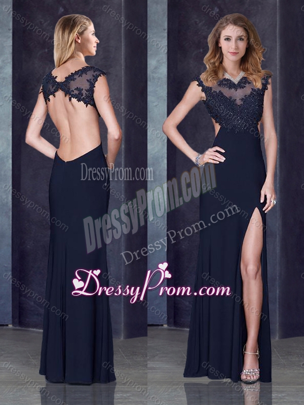 Neckline : BateauShown Color : BlackSilhouette : Column/SheathSleeve Length : cap sleevesHemline : floor lengthBack Detail : BacklessFabric : Elastic Woven SatinEmbellishment : Beading,AppliquesOccasion : Prom,Party,Cocktail,Homecoming,GraduationSeason : Spring,Summer,Fall,Winter