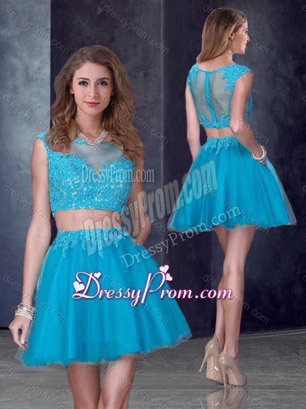 Neckline : BateauShown Color : Teal Silhouette : ShortSleeve Length : cap sleevesHemline : mini lengthBack Detail : ZipperFabric : TulleEmbellishment : AppliquesOccasion : Prom,Party,Cocktail,Homecoming,GraduationSeason : Spring,Summer,Fall