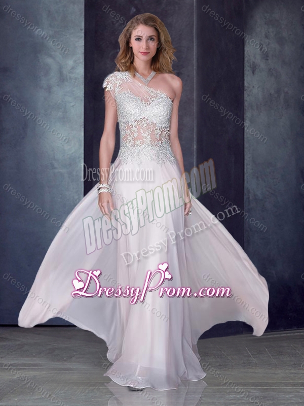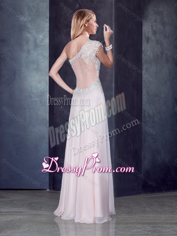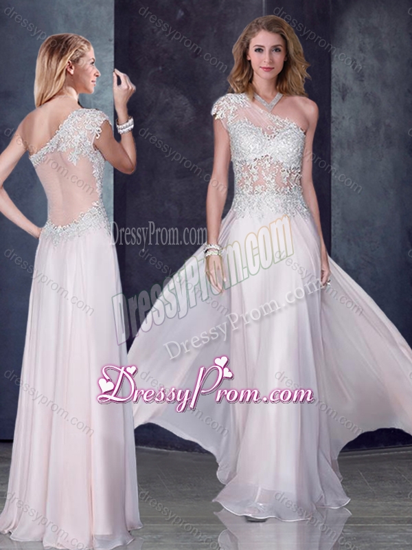 Neckline : One shoulderShown Color : Pink Silhouette : EmpireSleeve Length : cap sleevesHemline : floor lengthBack Detail : BacklessFabric : ChiffonEmbellishment : AppliquesOccasion : Prom,Party,Cocktail,Homecoming,GraduationSeason : Spring,Summer,Fall,Winter