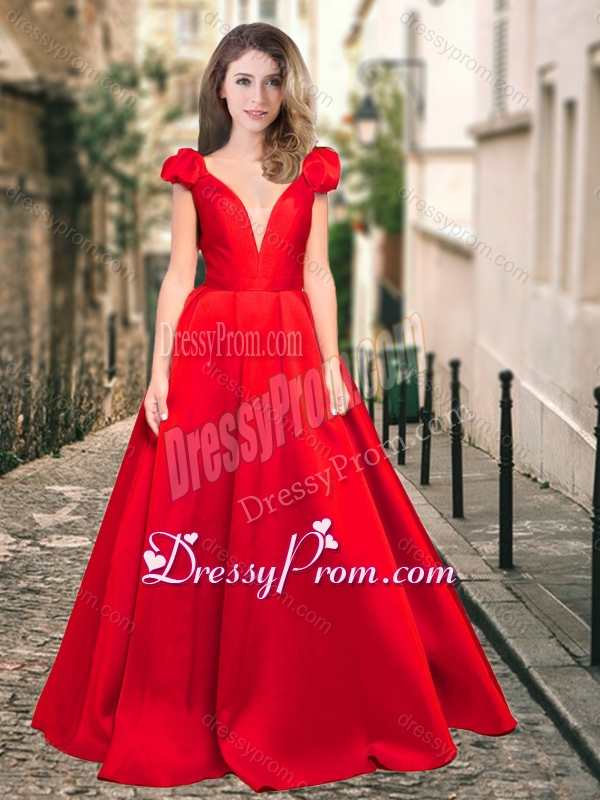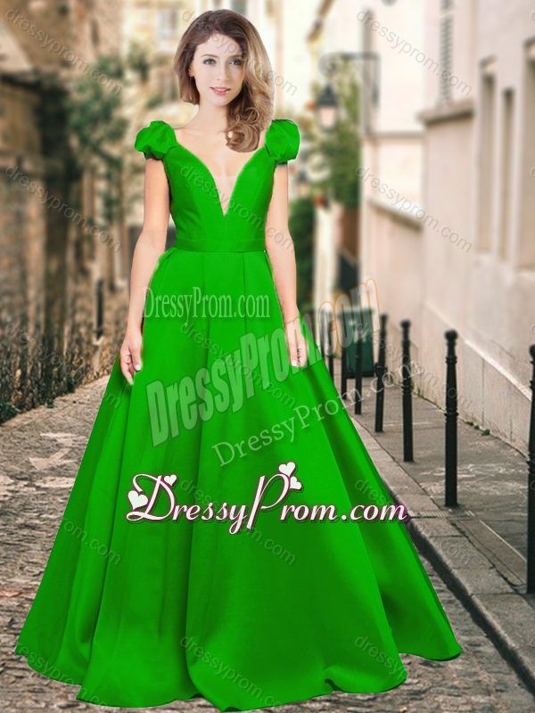 Neckline : V-neckShown Color : Red,GreenSilhouette : A-lineSleeve Length : cap sleevesHemline : floor lengthBack Detail : ZipperFabric : SatinEmbellishment : RuchingOccasion : Prom,Party,Cocktail,Homecoming,GraduationSeason : Spring,Summer,Fall,Winter