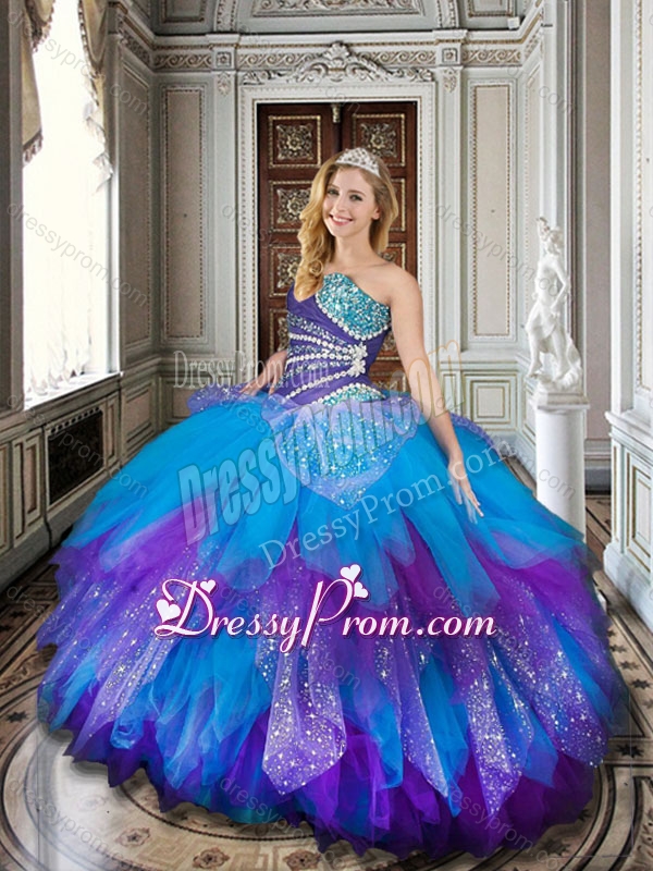 Neckline : StraplessShown Color : Baby Blue,PurpleSilhouette : Ball GownsSleeve Length : sleevelessHemline : floor lengthBack Detail : Lace upFabric : TulleEmbellishment : Beading,RufflesOccasion : Military Ball,Sweet 16,QuinceaneraSeason : Spring,Summer,Fall,Winter