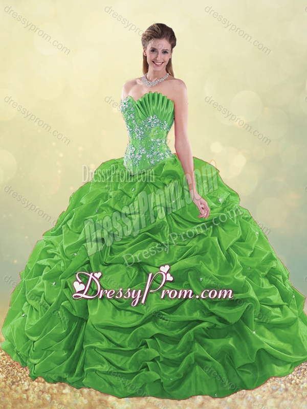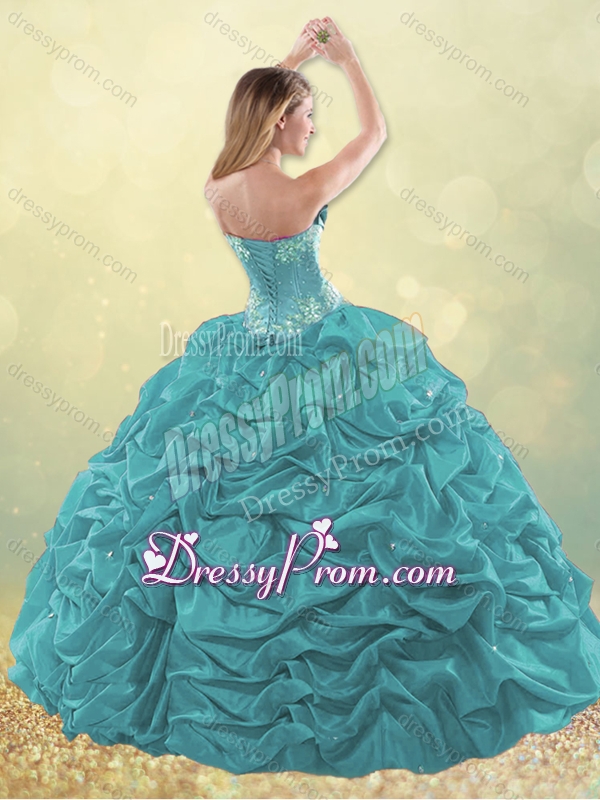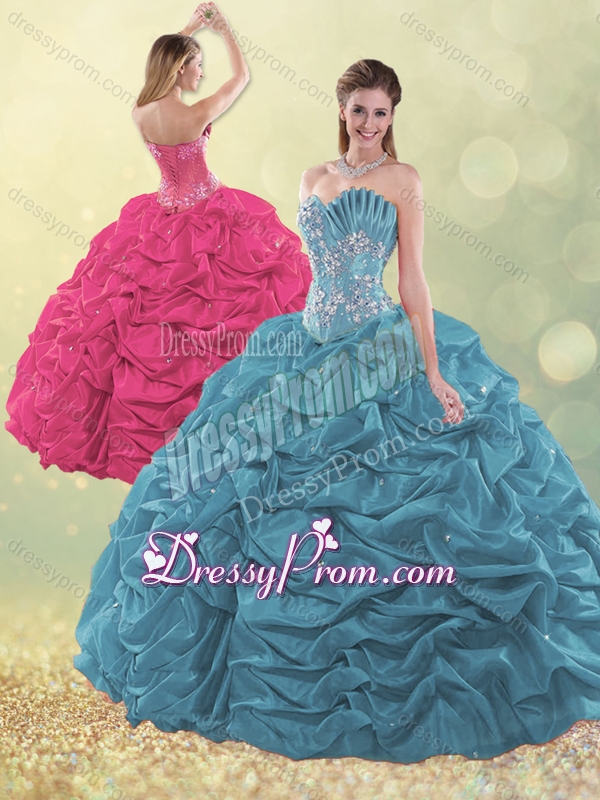 Neckline : SweetheartShown Color : Hot Pink,Teal Silhouette : Ball GownsSleeve Length : sleevelessHemline : floor lengthBack Detail : Lace upFabric : TaffetaEmbellishment : BeadingOccasion : Military Ball,Sweet 16,QuinceaneraSeason : Spring,Summer,Fall,Winter