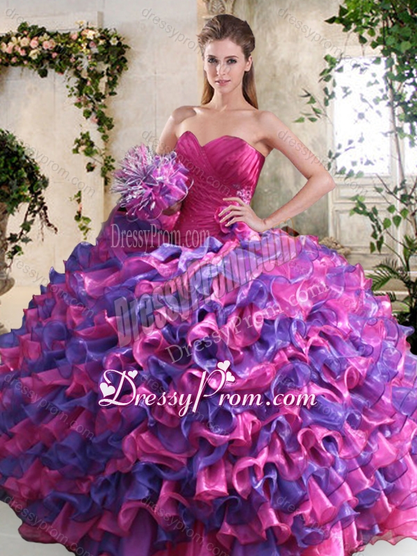 Neckline : SweetheartShown Color : Pink ,Eggplant PurpleSilhouette : Ball GownsSleeve Length : sleevelessHemline : floor lengthBack Detail : Lace upFabric : OrganzaEmbellishment : Ruffled LayersOccasion : Military Ball,Sweet 16,QuinceaneraSeason : Spring,Summer,Fall,Winter