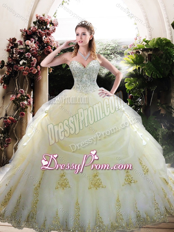 Neckline : SweetheartShown Color : WhiteSilhouette : Ball GownsSleeve Length : sleevelessHemline : floor lengthBack Detail : Lace upFabric : OrganzaEmbellishment : Beading,AppliquesOccasion : Military Ball,Sweet 16,QuinceaneraSeason : Spring,Summer,Fall,Winter