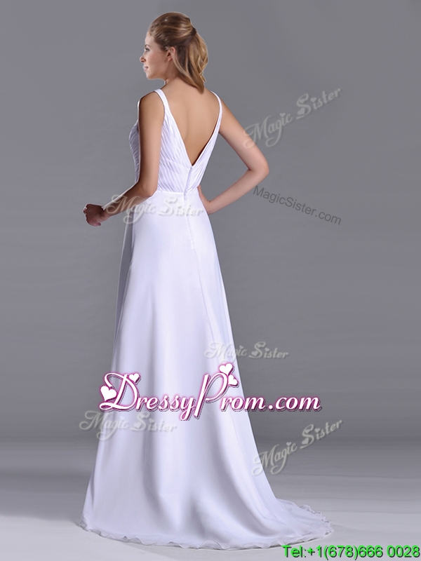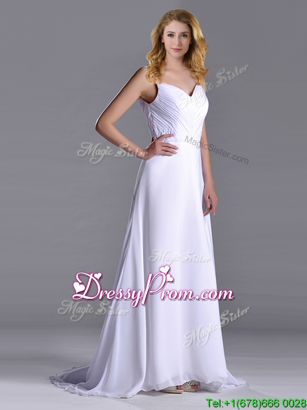 Neckline : StrapsShown Color : WhiteSilhouette : EmpireSleeve Length : sleevelessBack Detail : ZipperFabric : ChiffonEmbellishment : RuchingOccasion : Prom,Formal Evening,Homecoming,GraduationSeason : Spring,Summer,Fall,Winter