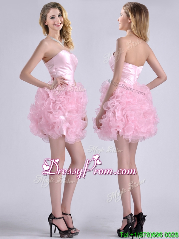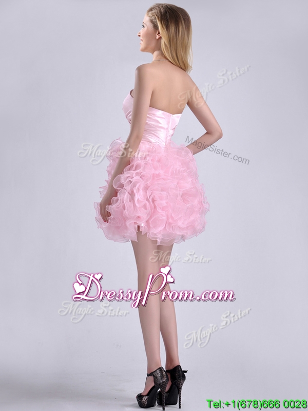 Neckline : SweetheartShown Color : Baby PinkSleeve Length : sleevelessHemline : mini lengthBack Detail : ZipperFabric : Fabric With Rolling FlowersEmbellishment : RufflesOccasion : Prom,Party,Cocktail,Homecoming,GraduationSeason : Spring,Summer,Fall