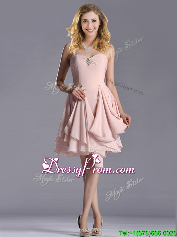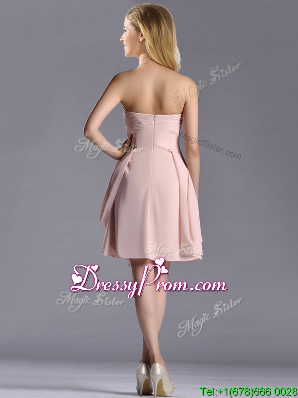 Neckline : SweetheartShown Color : Baby PinkSilhouette : EmpireSleeve Length : sleevelessHemline : mini lengthBack Detail : ZipperFabric : ChiffonEmbellishment : BeadingOccasion : Prom,Party,Cocktail,Homecoming,GraduationSeason : Spring,Summer,Fall